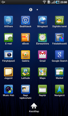 A készüléken az Android 2.2-es, FroYo művésznevű változata fut, amelyet a Samsung kiegészített a saját UI megoldásával, a TouchWizzel (badás készülékekről már ismerhetjük). A sebességre nem lehet sok panasz, a készenléti képernyő és a menü görgetése, valamint a webböngészés is piszok gyors, a 720p-s videókat is csont nélkül viszi a masina. Mint azt az androidos gépeken megszokhattuk, itt is többoldalas készenléti képernyőt kapunk, amit kedvünkre telepakolhatunk minialkalmazásokkal, a választék az alap androidos, a Samsung által előre telepített és az Android Marketről letöltött widgeteken ível át.