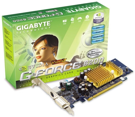 Hamarosan megérkeznek hazánkba az NVIDIA TurboCache technológiáját alkalmazó Gigabyte GeForce 6200TC kártyák. Az NV44 kódnevű grafikus processzor három vertex- és négy pixel-futószalagot tartalmaz, és 350 MHz-en fut. A belépő szintű, ám DirectX 9.0c-kompatibilis 3D-gyorsítók trükkje a memóriakezelésben rejlik, hiszen magán a kártyán csak 16, 32 vagy 64 MB RAM található, melyet a rendszermemóriából foglalt további tárhely egészít ki. A konstrukciót a gyors és szimmetrikus PCI Express x16 interfész teszi lehetővé.