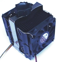Ami viszont kissé meglepett, hogy a borda két oldalára szerelt ventilátorok egymás fele pumpálják a levegőt! Továbbá, jó megoldás, hogy a tápcsatlakozó direkt a PC tápegységére is dugható (gyengébb alaplapok kímélése végett), de ezzel elveszítjük a monitoring funkciót.