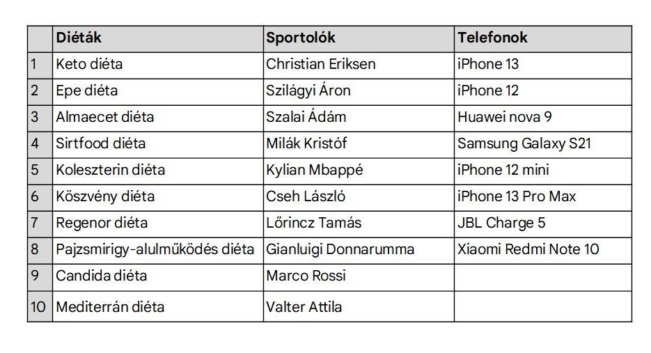 A sorozatok listáján mind külföldi (Squid Game, Bridgerton), mind hazai gyártásúak (Keresztanyu, Doktor Balaton) megtalálhatók. Tévéműsorok körében a Sztárban sztár leszek!, az Exatlon Hungary és az X-Faktor járnak az élen, receptek között pedig a fánk, a birsalmasajt és a bodzaszörp elkészítési módjára kerestek rá a legtöbben az egy évvel korábbi adatokhoz képest. A sportolók közül Christian Eriksen, Szilágyi Áron és Szalai Ádám kerültek az idén fókuszba a Google keresések között.