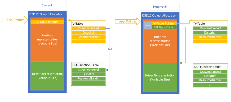 Érdekes fejlesztés készül a DirectX 12 API-ba, amely tovább csökkenti a rendszer többletterhelését, méghozzá azáltal, hogy bizonyos DDI objektumpointerek közvetlenül megcélozhatják a grafikus meghajtó DDI függvénytábláját. Ezáltal ezeket a jövőben nem szükséges majd a virtuális függvénytáblába betölteni, így a processzor kevesebb időt tölt majd a feldolgozásukkal.