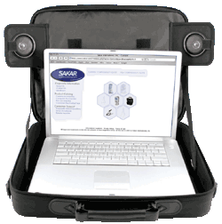 A Sakar Laptop Sound Case-be egy aktív hangszórópárt rejtettek el a készítők, melynek segítségével a noteszgép tulajdonosa kiválthatja a számítógépébe szerelt, többnyire csak zörejek vagy rendszerhangok megszólaltatására alkalmas hangszórókat. A szetero hangrendszert egy 9 voltos elem működteti, a jelcsatlakozás pedig a mellékelt jack rendszerű kábellel oldható meg. A Laptop Sound Case koncepciójába ugyanakkor egy apró hiba csúszott; a noteszgépek megfelelő szellőzése elengedhetetlen a stabil működéshez, márpedig valószínűtlen, hogy egy (akár nyitott) táskába helyezett hordozható számítógép elégséges hűtése hosszútávon megoldható.