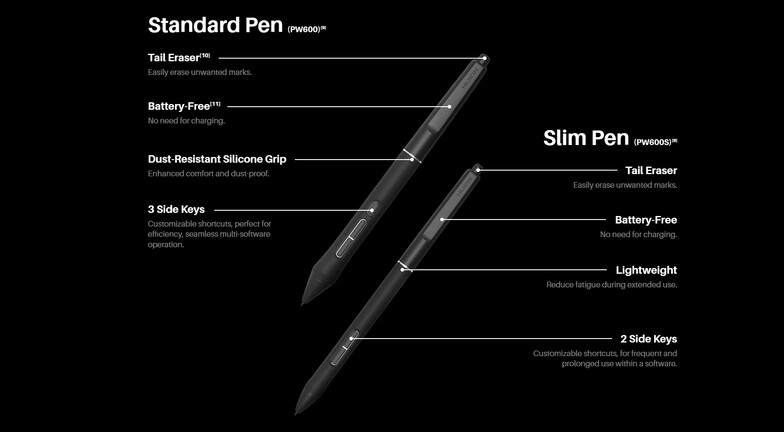 A Huion kínálata a Kamvas Pro 27 névre keresztelt, tízpontos érintőkijelzővel gyarapodott, ami a 4K felbontáshoz 144 Hz-es képfrissítási rátát párosít, akkumentes, 5080 lpi (lines per inch) felbontású PW600/PW600S styluszai pedig a PenTech 4.0 technológia révén 16 384 nyomáspontot tudnak megkülönböztetni, miközben támogatják a ±60 fokos döntést.