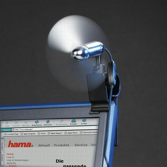 A Hama cég új megoldása nem nevezhető korszakalkotó találmánynak, csupán a számítógép vagy a notebook előtt ülők kényelméről szeretne egy kicsit gondoskodni. Az USB-portra köthető mini-ventilátor arra hivatott, hogy egy kis friss levegővel hűtse a felhasználó arcát. Az eszközt egy tartó rögzíti a notebook vagy a PC monitorának tetejéhez. A fekete-ezüst színű ventilátor áramfelvétele 80 mA, az ára 13 euró. Kíváncsian várjuk, hogy mit találnak ki legközelebb a gyártók, hogy - talán egy kicsit hasznosabban - megkönnyítsék a felhasználók életét...