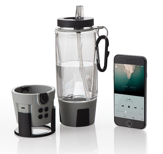 Az évek során rengeteg furcsa elektronikus eszközzel találkoztunk már, és abszolút ezek közé tartozik a Hydra fantázianevű okosnak nevezett kulacs is. A furcsa mutáns aljában egy 5 wattos maximális névleges kimeneti teljesítményű, papíron 2.1 csatornás hangrendszer kapott helyet, amelyre Bluetooth kapcsolaton, vagy a 3,5 mm-es analóg hangcsatlakozón keresztül juttathatóak el a zeneszámok.