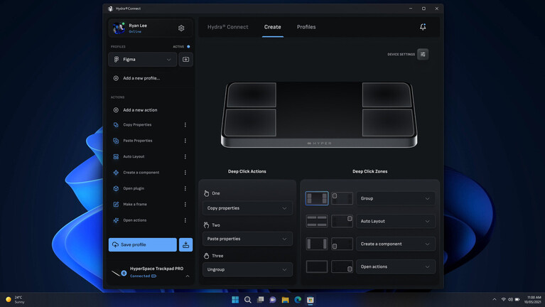 Fizikai gombok híján az apparátuson bárhol imitálhatunk kattintást, és mert az érzékelőmátrixa képes a nyomáskülönbségek felismerésére, létrehozhatunk zónákat, ahol a tuszkolás erősségétől függ az aktiválandó funkció. Az eszköz nagy mértékben testreszabható (beleértve a haptikus rendszer paramétereit vagy a sarkokba definiálható gyorsparancsokat, amelyek akár globális/app-specifikus makrók is lehetnek), és előre letárolt profilokkal jön a Microsoft Office-hoz, Figmához, Adobe Premier Próhoz, Illustratorhoz, valamint Photoshophoz.