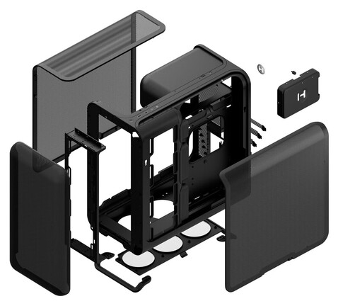 A legfeljebb 223 mm hosszúra nőtt tápegység felül, egy alulról óriási kivágással perforált kamrában nyer elhelyezést, míg a beszerelhető ventilátorok száma tíz. A vizes rendszerek gazdái három radiátorral tervezhetnek, amelyekből kettő 360 mm-es lehet, és a hasi szekcióban mágneses porszűrő betét igyekszik megőrizni hardvereink tisztaságát.