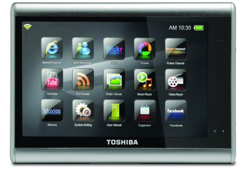 Az IFA szakkiállítás egyik legérdekesebb eszközét a Toshiba mutatta be JournE személyében, ami egy tablet PC. A kis készülék 7 hüvelykes képátlójú érintőképernyővel van felszerelve, amely 800x480 pixeles felbontású és LED háttérvilágítást kapott. Beépített 802.11b/g-s Wi-Fi modulnak köszönhetően internetezhetünk vele, de találunk rajta multimédialejátszót is, amivel képeket, filmeket nézhetünk és zenét hallgathatunk. A Toshiba külső, 3.5G-s USB modemet is támogat. A nagyfelbontású videókkal is megbirkózik H.264 támogatásának köszönhetően. Mellékelnek hozzá egy bölcsőt, amin keresztül tölteni lehet, illetve HDMI kimenetként funkciónál. Találunk rajta normál és mini-USB csatlakozót és persze kártyaolvasót, amin keresztül bővíthetjük az 1 GB-os háttértárat akár 32 GB-os SDHC kártyával is. Az olvasó továbbá kezeli az SD, MMC, MS, MS Pro és XD memóriakártyákat is.