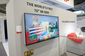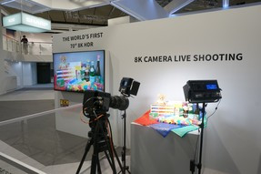 Kérdés persze, hogy mégis mit lehet nézni egy ilyen kijelzőn, hiszen tartalmak még nincsenek. Nos, első körben ezt felskálázással oldanák meg, azaz Full HD és 4K anyagokból kreálna a tévé szoftvere 8K felbontásút. Mindez azért annyira nem meggyőző, hiszen eddig egyetlen ehhez hasonló technológia sem volt képes elérni tökéletest csak közelítő végeredményt sem. Emellett kiállítottak egy kamerát, amely valós időben közvetített 8K tartalmat egy csatlakoztatott tévére. Ezzel csak az volt a baj, hogy csak egy statikus, mozdulatlan képet láttunk, és nem is engedték, hogy a kamera előtt mozogjon bármi. Ezen kívül még a cég helyszínen tartózkodó képviselői azt állították, hogy készülnek az első 8K videók kezelésére képes asztali lejátszók, de ezeknek még prototípusát sem mutatták be.