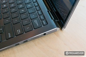 A kisebb, 13”-es kijelzőt használó modell érdekessége, hogy kérhető hozzá hátsó, Full HD felbontású kamera is, kérdés, hogy ez megéri-e, ilyenkor ugyanis csak két USB 3.1 Gen 1 Type-C csatlakozónk marad, míg kamera nélkül ezek mellé egy harmadik, Type-A konnektort használó USB port és HDMI is kerül. Ezeket a 15”-es változatban egy SD kártyaolvasó egészíti ki, és ennél a modellnél az SSD-k mellé akár 2 TB-os HDD is választható.