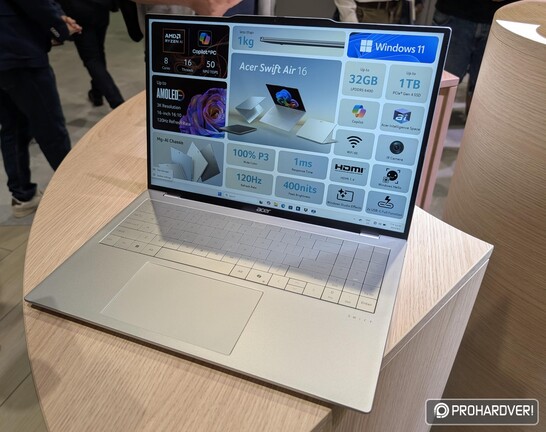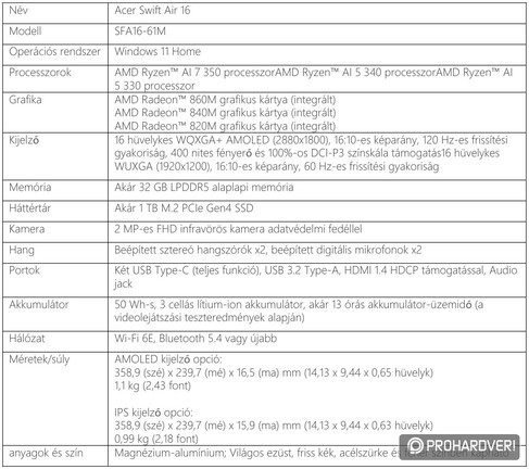 Az Acertől nem áll távol a különböző rekordok hajszolása – gondoljunk csak a korábbi Swift 7 generációkra, melyek évekig viselték a világ legvékonyabb noteszgépe címet. Ezért persze jócskán kellett nekünk is kompromisszumot kötni, az ultravékony gépház nem volt igazán stabil, és a Core M processzorok sem elképesztő teljesítményükről voltak híresek, de igazából általános használtra nem volt baj ezekkel a Swift 7-esekkel. Most valami hasonlót állítottak ki, Swift 16 Air néven: a világ – jelenleg – legkönnyebb 16 hüvelykes noteszgépét, amely méretének dacára is csak 999 grammot nyom. És ezt így leírni könnyű, de kézbe véve valóban meglepő, hogy „könnyűsége” mennyire nem passzol fizikai méreteihez, az ember hajlamos modellnek, belül üres „demónak” gondolni, amikor felemeli.