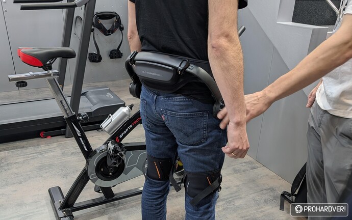 Mi most az IFA kiállításon a Hypershell cég azonos nevű ilyen járássegítőjét próbáltuk ki, melyet kifejezetten a sportos, aktív életet élőknek ajánlanak. Többféle változatban érhető el, van a Go, a Pro és az Ultra, melyek sorban 400, 800 illetve 1000 wattos teljesítményűek. Ezeknek 2 kg a tömegük, aki ezt sokallná, annak készül a Pro modell Carbon verziója is, mely 200 grammal könnyebb. Felvenni elég egyszerű őket, először jó szorosan a csípőnkre kell csatolni, majd jöhet a combunkat támasztó rész rögzítése – a különböző szíjak beállítása először bizony eltart egy-két percig, de utána már – ha nem adjuk kölcsön másnak – ezzel nem kell bajlódni, praktikusan 10-20 másodperc alatt magunkra ölthetjük járógépünket. A termék több fokozatban is tud segíteni, pont mint egy e-bike, szóval nem fogunk rögtön szöcskévé változni.