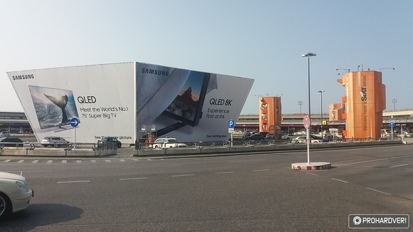 Már korábban pletykálták, hogy a konszern az idei berlini IFA kiállításra is elhoz egy 8K felbontású, azaz 7680x4320 képpont megjelenítésre képes készüléket. Nos, egészen biztos, hogy ez tényleg így lesz, hiszen az esemény csak holnap nyitja meg a kapuit, de a berlini Tegel reptéren már egy gigantikus óriásplakát fogadja a népet, amelyen az új modellt hirdetik. Erről egy fotót is készítettünk és gyakorlatilag biztos, hogy augusztus 30-án pontos részleteket is megtudhatunk erről a QLED televízióról, hiszen a Samsung aznap tartja hivatalos sajtótájékoztatóját, amire mi is meghívást kaptunk.