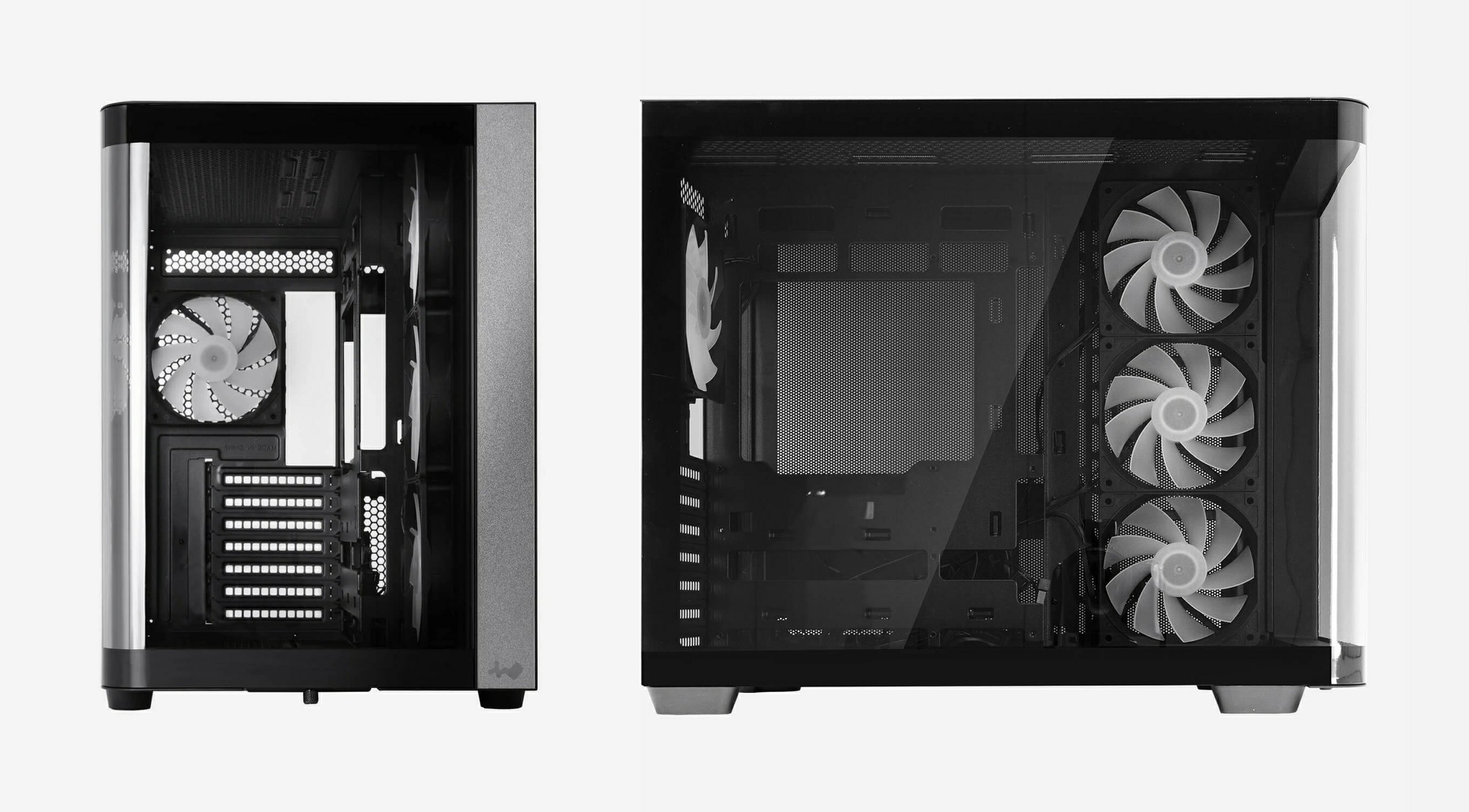 Az In Win a napokban piacra dobta az idei CES alkalmával bemutatott, félkörpanorámás házát, amelynek frontján, illetve balján egybefüggő, ívelt üveglap figyel, és el tudja szállásolni a csatlakozóikat túlsó felükön hordó, ASUS BTF, MSI Project Zero vagy Gigabyte Project Stealth szériás deszkákat.