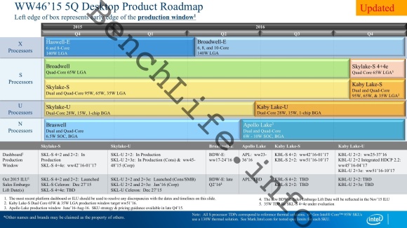 A megjelenés szempontjából a Broadwell-E, a Kaby Lake-U és az Apollo Lake a második negyedévben várható, míg a többi újdonság a negyedik negyedévben érkezik.