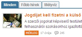 - A publikált írások a korábbi két oszlop helyett egy egységes folyamban sorjáznak a címlapon. Itt a lista tetején látható három füllel lehet szűrni a folyam anyagait: a Minden fülhöz nem kell kommentár; a Főbb hírek a kiemelt anyagokra, a Mélyvíz pedig a nagyobb terjedelmű, többoldalas írásokra szűkíti a listát.