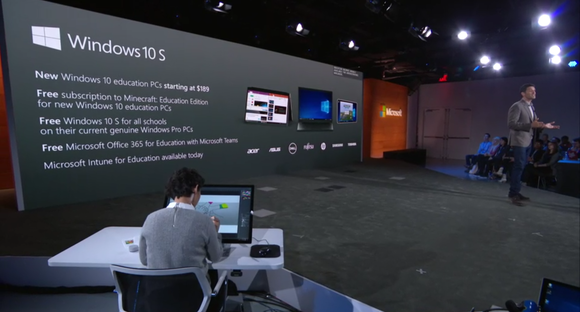 Keddi, oktatási célú rendezvényén Terry Myerson, a Microsoft Windows és Eszközök csoportját vezető alelnöke bejelentette a Windows 10 új verzióját, a Windows 10 S operációs rendszert. Az S az áramvonalasságra (streamlined) utal, és egy olyan rendszert jelent, amiben kizárólag az alkalmazásboltból letöltött szoftverek használhatók.
