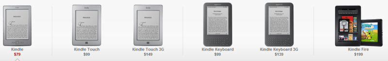 A tablet mellett bemutatták új ekönyv olvasóikat is, amik között található érintőképernyős és hagyományos kivitel is. A Kindle Touch fő ismérve, hogy kisebb, könnyebb, árban pedig megegyezik a Kindle 3 árszabásával, ami annyit tesz, hogy Amerikában rendelhető a reklámokkal megbolondított 99 dolláros változat, a nemzetközi ára pedig 139 dollár. Ez a szerkezet természetesen eInk-es, 6 hüvelykes és 16 szürke árnyalatra képes Pearl kijelzővel valamint 4 GB belső tárhellyel rendelkezik. Az alapmodell Wi-Fi-vel rendelkezik, míg a némileg drágább 3G változat ismét kínálja az Amazon ingyen internet elérését. Ez utóbbi reklámokkal 149 dollárba, azok nélkül 189 dollárba fog kerülni. Ez a két változat mint ahogy a nevük is mutatja érintőképernyővel rendelkezik.