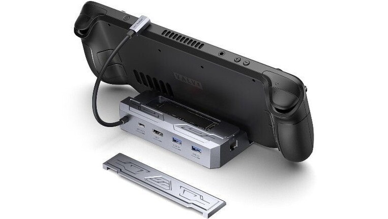 A Valve kézikonzolját fogadó megoldás alumíniumburkolatán egy HDMI 2.0-s aljzat (4K/60 Hz vagy 1440p/120 Hz), egy 100 watt továbbítására alkalmas USB Type-C, illetve két USB 3.0 aljzat található a gigabites Etherneten kívül.