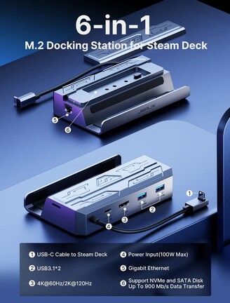 A JSAUX bejelentette, hogy a HB0604-es azonosítót viselő, következő generációs Steam Deck dokkolója már rendelhető, és egyebek mellett egy M.2 2230/2242/2260/2280 interfész is van rajta, amelytől legfeljebb 900 MB/s-os lineáris lemezműveleteket várhatunk.