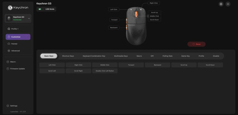 Az USB mintavételezés maximuma 2,4 GHz-es rádióval és USB Type-C/Type-C kábellel egyaránt 8000 Hz, de a 125 Hz-es Bluetooth 5.3 ugyancsak kipipálható a specifikációk sorában. A beépített, 500 mAh-s akkumulátor körülbelül 37 (2,4 GHz, 8 kHz)/140 (2,4 GHz, 1 kHz)/160 órás (BT) energiatartalékokkal rendelkezik, és a szoftveres hátteret a gyártó Chromium alapokra építkező böngészőkön keresztül elérhető Keychron Launcher applikációja testesíti meg.