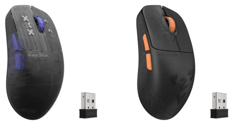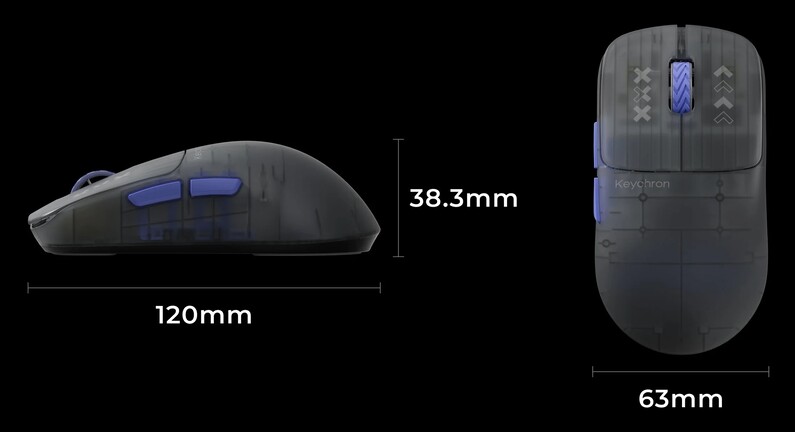 A Keychron portfóliójában felbukkant a G3 típusjelet viselő, mindössze 44 grammos egér, amit far felé eltolt, viszonylag meredeken csapott púpjából kifolyólag elsősorban karmos fogásokhoz terveztek, és áttetsző polikarbonát kivitelben (nettó) 85, szénszálas kompozit burkolattal pedig (nettó) 110 dollárért tehető kosárba.