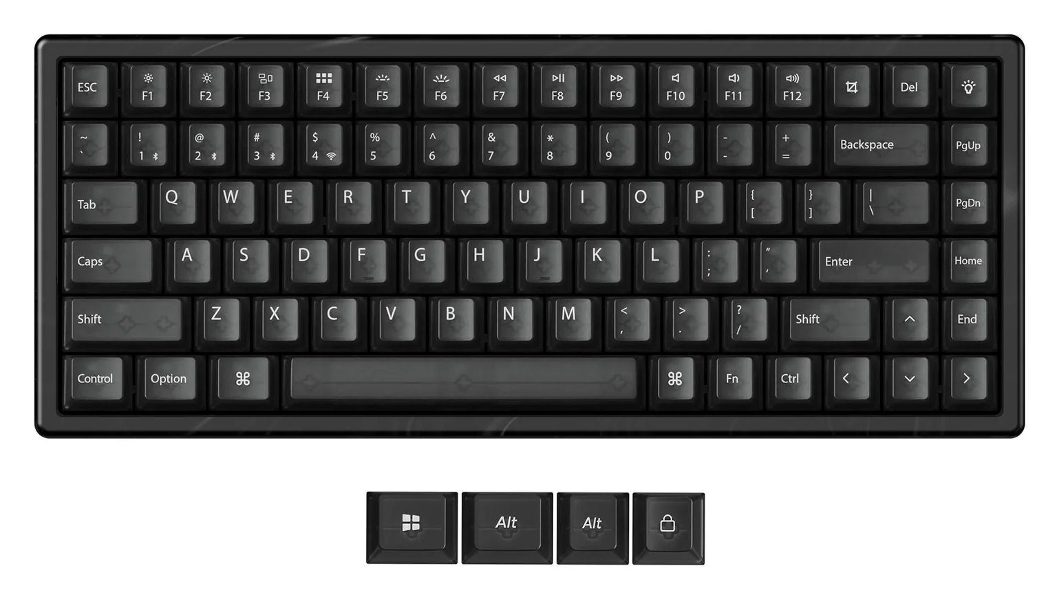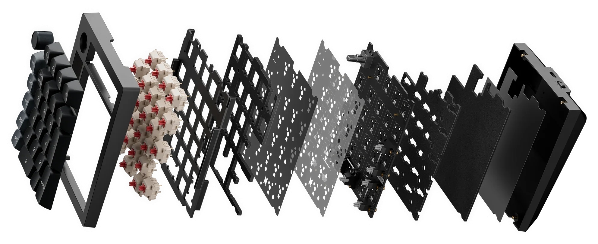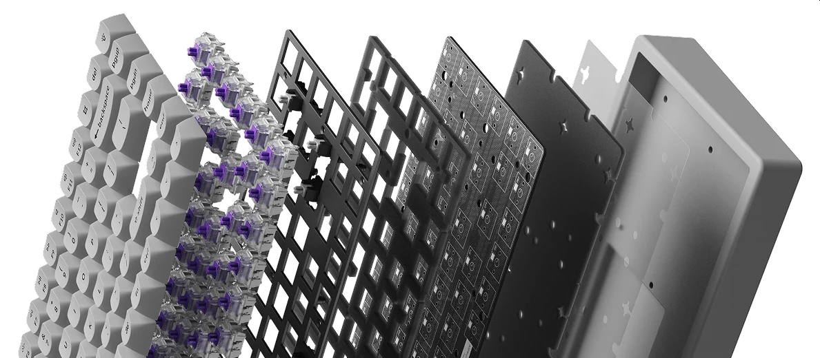 - gyárilag kent Gateron Double-Rail Magnetic Nebula switch-ek (40/60 gf, négy aktuációs pont a 4 mm-es kapcsolóút 0,2-től 3,8 mm-ig terjedő szakaszán, 0,1 mm-es érzékenység)
