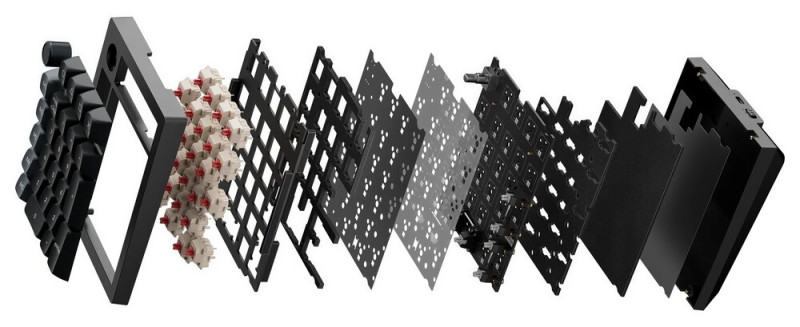 A másik, mérlegen 310 grammot nyomó jövevény a V0 Ultra 8K-ként jegyzett, 26 gombos numerikus pad/makrópad, ami öt helyett hat csillapítóréteget kapott, és fixen 3 fokos dőlésszöggel, 1800 mAh-s, maximum 360 órás működést ígérő akkumulátorral, továbbá (nettó) 70 dolláros árjelzéssel rendelkezik.