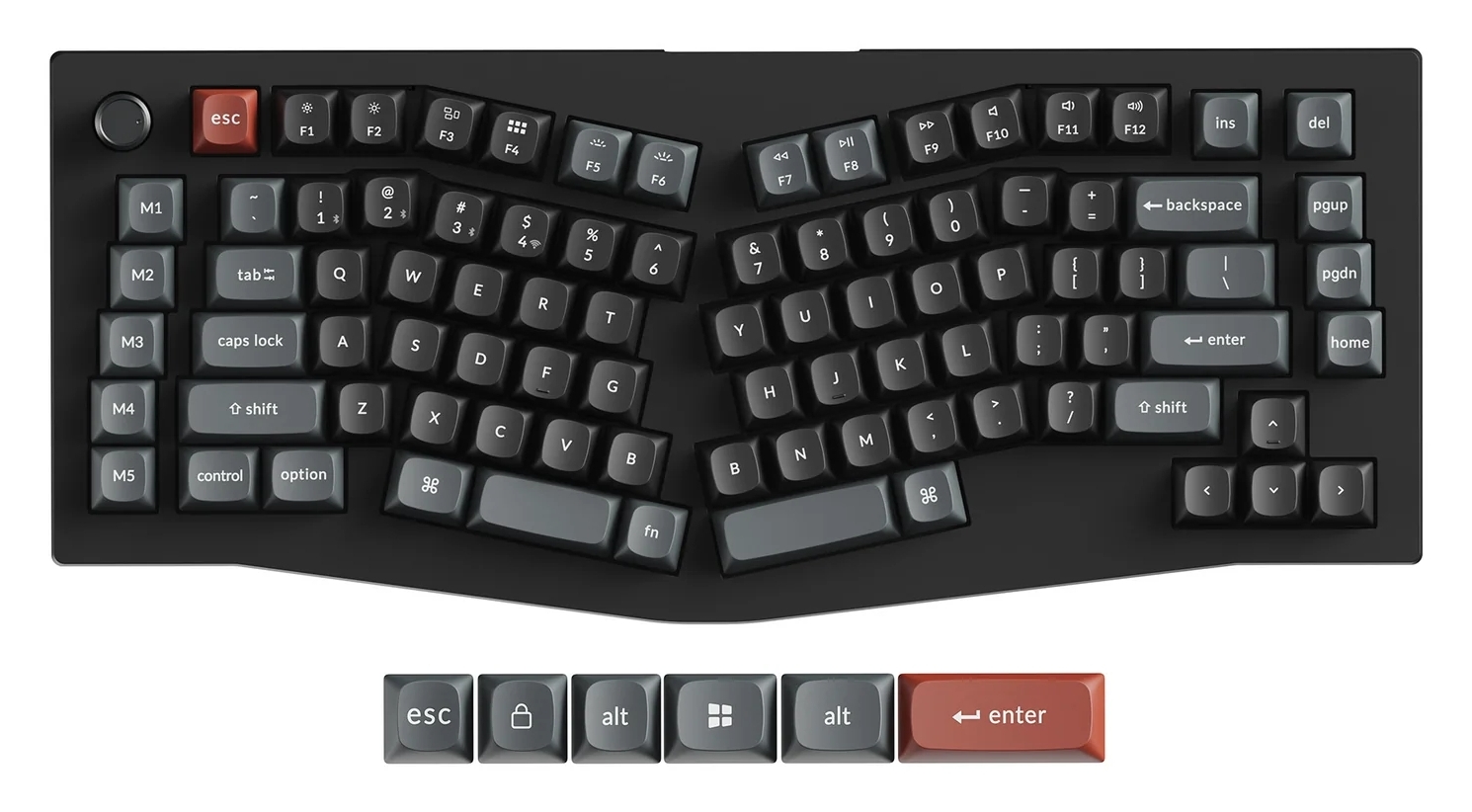 A Chromium alapokon nyugvó böngészőkből indítható Keychron Launcher applikációval is finomhangolható modellek sorát a szintén 75 százalékos formátumú, azonban balján dedikált makróoszloppal kiegészített V10 Ultra 8K nyitja, amely kettéosztott, némileg elforgatott alfaklaszterekkel dolgozó Arisu (nem ugyanaz, mint az Alice) elrendezése révén lehetővé teszi, hogy csuklóinkat fiziológiai szempontból a megszokottnál egészségesebb helyzetben tarthassuk gépelés közben.