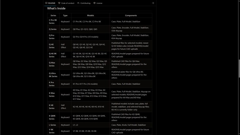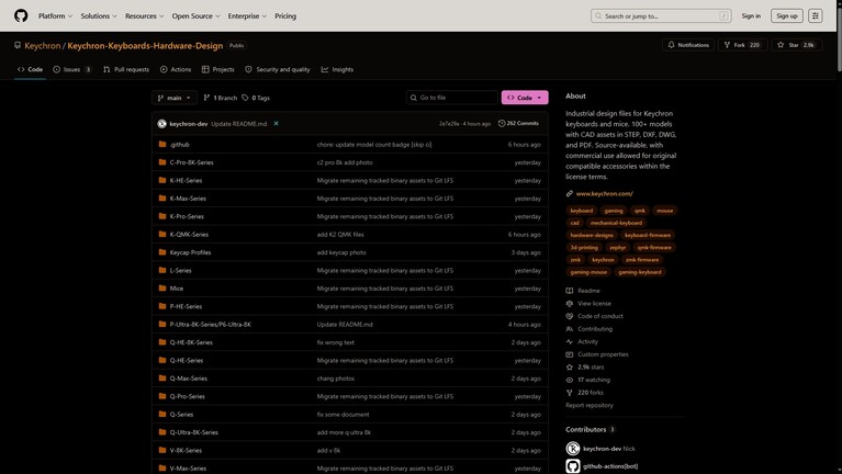 A Keychron egy nagy gyártótól kissé szokatlan lépésre szánta el magát, ugyanis a GitHubra feltöltötte a billentyűzeteinek, illetve egereinek 3D-s fájljait, amelyeket leszedvén teljesen egyénre szabott iterációkat készíthetünk belőlük (esetleg velük kompatibilis kiegészítőket tervezhetünk), ha nem idgenkedünk a 3D nyomtatástól, netán CNC-marástól, és kicsit konyítunk az olyan programokhoz, mint például a FreeCAD, AutoCAD, Solidworks, Fusion360, Onshape vagy épp DraftSight.