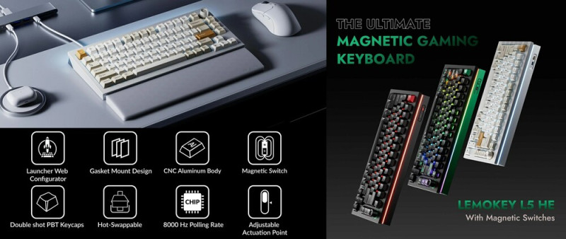 A Keychron játékos almárkájaként működő Lemokey útjára indította legfrissebb, analóg kapcsolókkal szerelt billentyűzetének, az 1,85 kilogrammos L5 HE-nek a Kickstarter kampányát, és a szóban forgó modellt – a gyártó portfóliójában először – gasket vagy top mounttal egyaránt használhatónak tervezik.