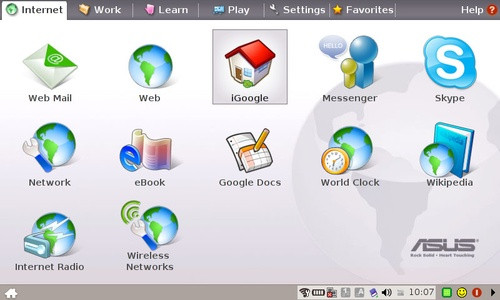 Az Eee PC sorozat első tagja, a 701-es modell az eredeti koncepciónak megfelelően egy erre a gépre átalakított, egyedi kezelőfelületet kapott Linux operációs rendszerrel (egy Debian-alapú Xandros disztribúcióval) került a boltokba, a gép flashmemóriás háttértárára a gyártó különböző ingyenes kommunikációs és irodai alkalmazásokat, segédprogramokat és játékokat is elhelyezett.