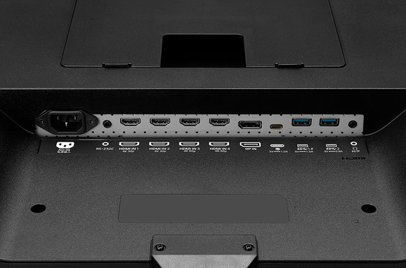Van élet a panelen túl is, hiszen érdemes megemlíteni a 2x10 wattos harman/kardon hangszórópárt, a fejhallgató kimenetet, illetve azt is, hogy rengeteg képbemenet kapott rajta helyet. A két HDMI 1.4 mellett két HDMI 2.0, egy DisplayPort 1.2a, valamint egy USB Type-C is fellelhető, mely utóbbi szintén képes DisplayPort jelet fogadni. A sok bemenetnek már csak azért is jelentősége van, mert a képet feloszthatjuk négy darabra, ami egy ekkora kijelzőn négy darab ~21,5 hüvelykes Full HD-s tartalmat jelent. Emellett a Dual Controller révén USB 3.0-s hub formájában helyet kapott benne egy KWM switch, azaz felváltva két különálló PC-t is tudunk vezérelni közös egérrel és billentyűzettel. A váltást és összességében a kezelés megkönnyítendő a kijelzőhöz mellékelnek egy távirányítót is.
