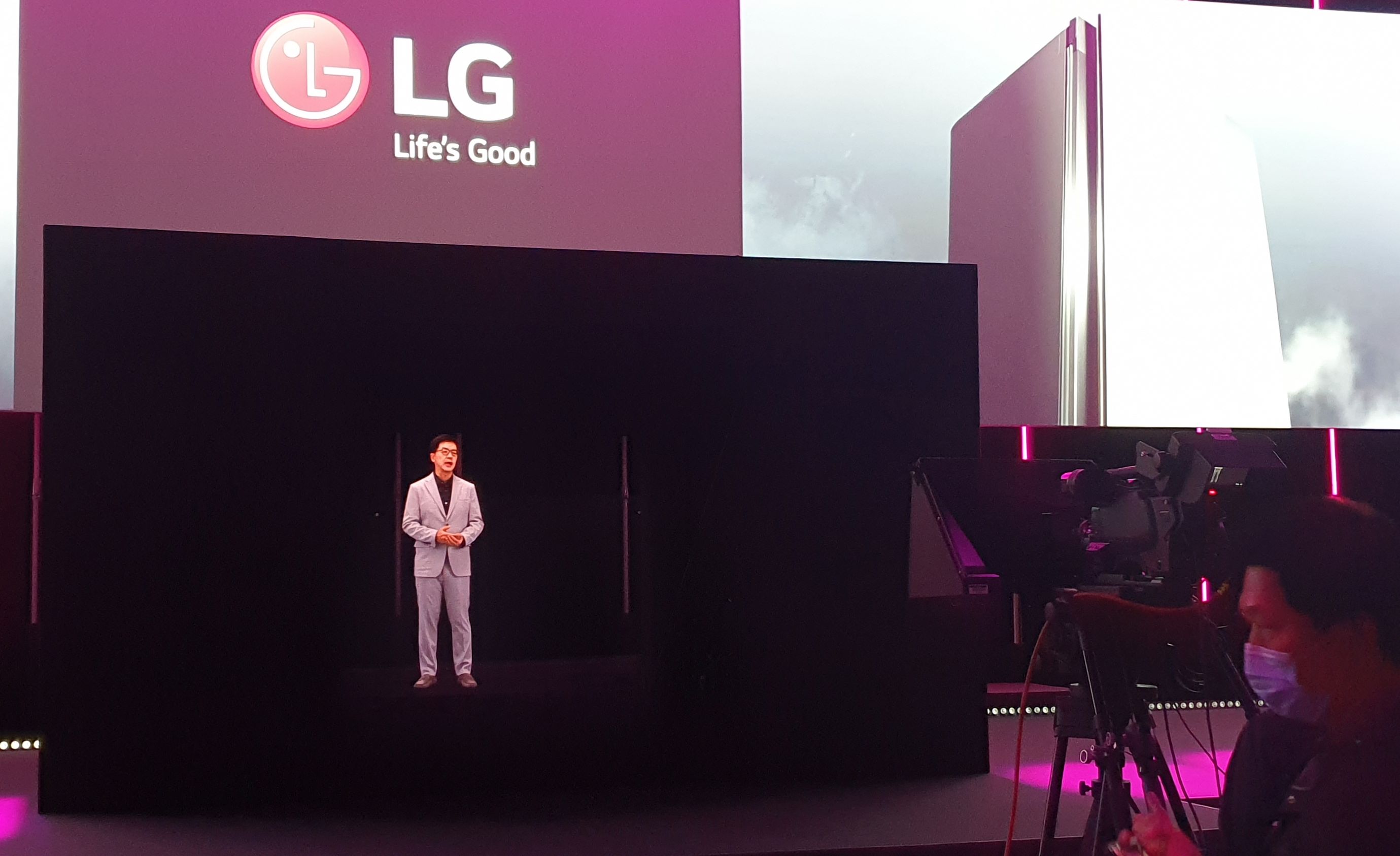 Az előadás különlegességét azt szolgáltatta, hogy LG technológiai vezetője, Dr. I.P. Park hologram formában lépett a színpadra. Konkrétan egy nagy dobozból magyarázott, és az illúzió teljesen olyan volt, mintha egy Igazi Ember beszélt volna a ládából.