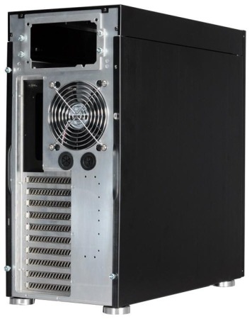 Az előlapon van még hely két 5,25”-es meghajtónak is, hátul találunk lyukakat a vízhűtéses rendszerek csövei számára, illetve ventilátorokból sincs hiány: elöl két 140 mm-es, hátul egy 120 mm-es kapott helyet.