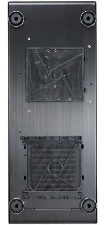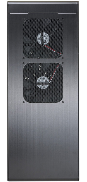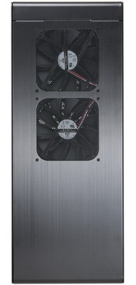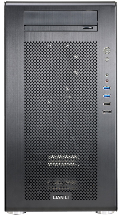Előlapját egy sűrűn lyuggatott, perforált rész uralja, amelyen keresztül a mögötte található ventilátorok jutatják be a konfigurációba a friss levegőt. Külső meghajtóhelyből egyetlen 5,25”-es árválkodik a felsőbb régióban, ezenkívül oldalt a szokásos nyomógombok és audioaljzatok, 2 x USB 2.0 és 2 x USB 3.0, valamint egy eSATA port sorakozik.
