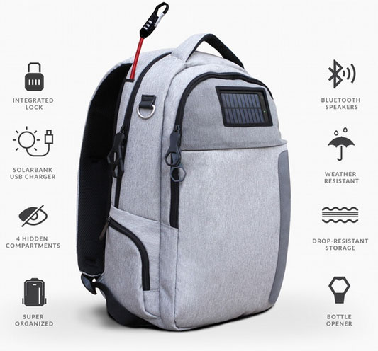 A vízálló anyagból készült, ütések ellen különféle párnákkal felszerelt termék rendelkezik egy saját napelemmel, illetve kivehető akkumulátorral, amely hozzávetőlegesen 12 iPhone 6 feltöltésére elegendő energia eltárolására képes. Ezt ráadásul egybeépítették egy Bluetooth támogatású, kis teljesítményű, de mobil hangrendszerrel is, amelyet így bármikor ki lehet venni a táskából és máris kezdődhet a zenehallgatás, akár úgy is, hogy a 3,5 mm-es analóg audió csatlakozón keresztül dugnak rá valamilyen eszközt. A különféle tartórekeszek sem hiányoznak belőle, valamint négy rejtett zsebet is kialakítottak rajta. Sőt, a táskáknál egyedülálló módon saját beépített, flexibilis lakatot is kapott, amivel egyszerűen és biztonságosan lehet rögzíteni bárhova. Mindezek alapján tényleg úgy tűnik, hogy ez egy szuper kis eszköz lehet, amely valóban képes megkönnyíteni a mindennapokat annak, aki például sokat utazik.