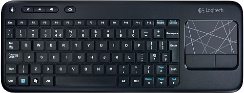 És a sort folytathatjuk a Logitech-kel, hiszen az ő kínálatukban is láthattunk már ilyet, példának okáért a diNovo Edge és a Cordless MediaBoard Pro személyében is, mely sor ezúttal egy friss taggal bővül. A Wireless Touch Keyboard K400 modell egy vezeték nélküli típus, mely a megszokott numpad helyett egy 3,5”-es touchpadet kapott. Ettől függetlenül a klaviatúra kiosztása aránylag a hagyományos mintát követi, bár a jobb-alsó sarok kissé talán zsúfolt lett a kurzormozgatók miatt.