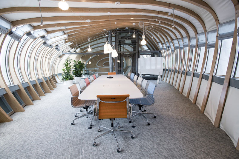 A bővítés legizgalmasabb eleme a bálna-tárgyaló, melyből izgalmas kilátás nyílik Budapest tető-tájára. „Dinamikus, lüktető, lendületes, ugyanakkor valami méltóságteljes nyugodtságot és biztonságot is sugároz ez a látvány” – fogalmaz a közlemény.