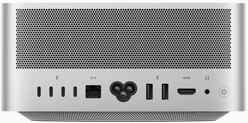 A Mac Studio alapmodell maximum öt kijelzőt kezel, ezek közül négy a Thunderbolt 5 aljzatokon keresztül 6K-s és 60 Hz-es lehet, egy pedig 4K-s 144 Hz-es, erre a HDMI van fenntartva. A 19,7 x 19,7 x 9,5 mm-es rendszer része a Wi-Fi 6E, a Bluetooth 5.3 és a 10 gigabites Ethernet, a beépített hangszóró, a 3,5 mm-es jack, illetve a a két USB 3 Type-A port, az SDXC szabványú memóriakártyákat kezelő kártyaolvasó mellett.