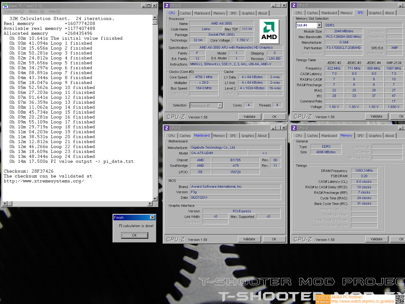 A 4761 MHz-en járó Llano 1,76 V-on üzemelt és folyékony nitrogént kapott hűtés gyanánt. A 32M-es SuperPi teszt hibátlanul lefutott, és ez alapján a rendszer stabilnak lett minősítve. Világrekordról nem lehet beszámolni, de az előbbi órajel az eddigi legmagasabb érték, amit az új Fusion APU-val sikerült elérni, de biztosak lehetünk benne, hogy az elkövetkező hónapokban ez még megdől.