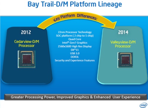 Az Intel az idei MWC-n már működő Bay Trail platformmal állt elő. Ez persze még nagyon korai prototípus volt, így képet nem lehetett róla készíteni, illetve a tesztverzió finoman szólva is nagy alaplapra épült a hibakeresés megkönnyítése érdekében. Természetesen a rendszer az alacsony fogyasztású megoldások közé nevez, így a végleges dizájnok sokkal kisebbek lesznek.