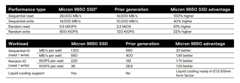 A Micron bejelentette, hogy az először még tavaly nyáron megvillantott, 9650 szériás NVMe SSD-i a tömeggyártási fázisba léptek, ami azért érdekes, mert az háttértárak PCI Express 6.0 interfésszel dolgoznak, és ennek köszönhetően szekvenciális olvasásban/írásban legfeljebb 28/14 GB/s-os tempót tudnak diktálni.