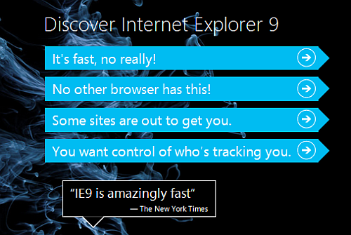 A kampány lényege kézenfekvően az Internet Explorer 9-es verziójának felhasználóbázisának növelése. Ami már kevésbé érthető, az a meggyőzésre használt eszközök alkalmazása: az írásnak címet adó mondat már rögtön a kezdőoldalon a szemünk elé tárul, ami valljuk be, meglehetősen erőtlennek, sőt, bénának hat. Ami inkább átjöhet ebből a szkeptikus felhasználó számára, hogy „eddig ugyan elrontottuk, de most már tényleg valami jót raktunk le az asztalra”.