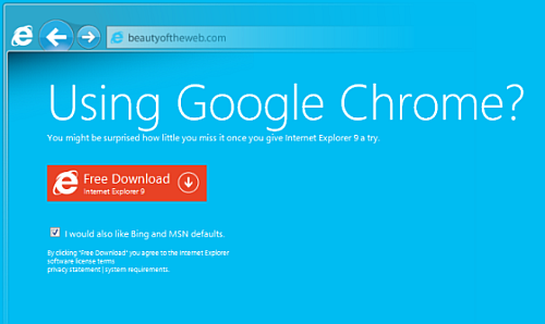 Nem kevesebb, mint 13 egész pixellel vékonyabb a kezelőfelülete a Chrome-énál és legalább 0,5 szekundummal gyorsabban tölti be az oldalakat a Google és a Mozilla megoldásainál. Hab a tortán, hogy biztonságosabb, mint a Firefox 7 – ezekkel a frenetikus előnyökkel csábít újabban Redmond az Internet Explorer 9 használatára. A kicsit erőltetettnek tűnő kampány furcsa módon a következő, 10-es verzió debütálása előtt két hónappal indult el.