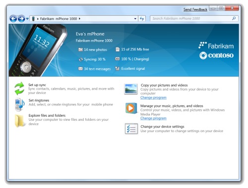 Sinofsky és egy másik Microsoft-vezető egy Asus Eee PC-n demózták, hogy az új operációs rendszer képes lesz szerény képességű hardveren is futni. Azt is bemutatták, hogy ha egy eszközt csatlakoztatnak a géphez, akkor annak ikonja azonnal megjelenik a képernyőn. Erre kattintva egy másik ablak bukkan elő, amit a Microsoft Device Stage-nek hív. Ezen az eszközgyártók különféle információkat jeleníthetnek meg, például súgókat, howto-kat vagy a helpdesk oldalára mutató linkeket stb.
