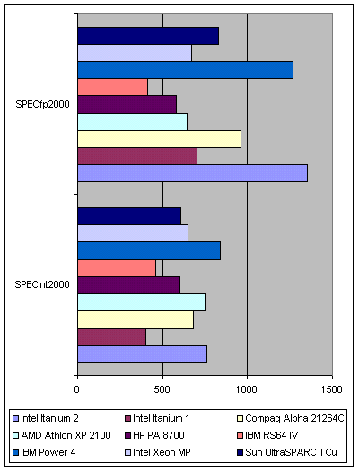 | IBM Power 4 | 1.3GHz 128MB L3 | 839 | 1,266 |