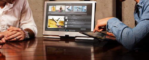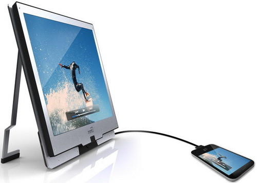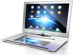 A billentyűzet vélt helyén egy iPad2/iPad3 dokkoló bölcső található, így a 15,6”-es kijelzővel egy lényegesebb nagyobb megjelenítőt kapunk, amely munka, prezentálás és szórakozás esetén is jól jöhet. A Monitor2Go felbontása 1366x768 pixel, de egy HD+ variáns is elérhető lesz, ennek felbontását már 1600 x900 pixelre emelték.