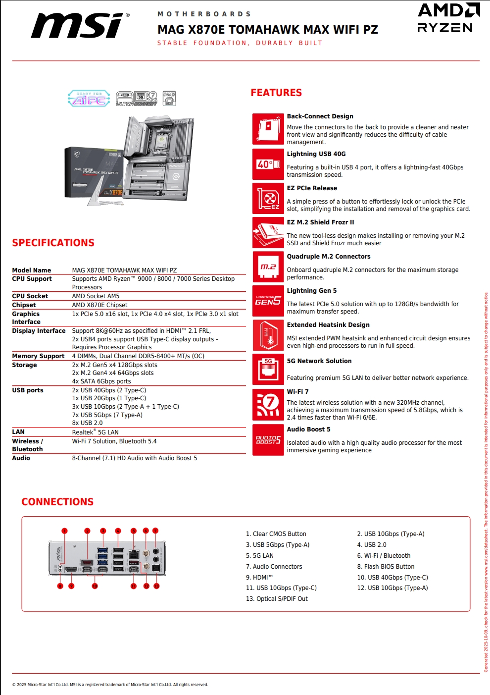 Úgy fest, hogy az MSI kicsit belehúz a kábeleiket rejtő, Project Zero szériás hardverek készítésébe, ugyanis az első efféle VGA-ját követően bemutatta a MAG X870E Tomahawk MAX WiFi PZ névre keresztelt deszkát, amelynek különféle csatlakozói a megszokotthoz képest az ellentétes oldalán nyertek elhelyezést.