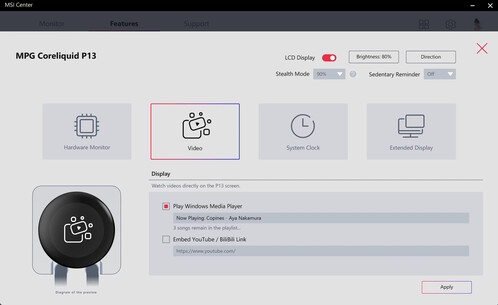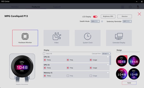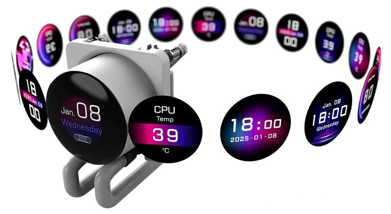 Az újdonság 2,52 wattot beszipkázó, réztalpas pumpa/blokk kombójának tetején egy 2,1 hüvelykes, 480 x 480 pixeles felbontású IPS kijelző trónól ívelt üvegburkolat alatt, amire a szenzoros adatokon kívül pontos időt, GIF animációkat, videót vagy egyéb, személyre szabott tartalmakat rakhatunk ki.